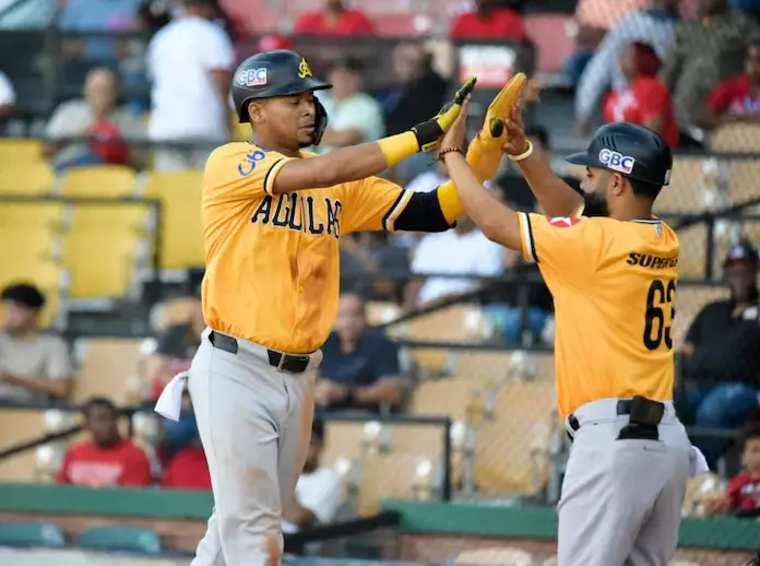 Por las Águilas destacó la consistencia de Alberto Rodríguez, quien se fue de 5-3 con un triple y una remolcada, seguido por el aporte multihit de Robert Moore, de 3-2, con una empujada. Leody Taveras bateó de 2-1, con una producida; Jerar Encarnación de 4-1, con un remolque; Ezequiel Durán, Webster Rivas y Alfredo Reyes dieron sendos sencillos.