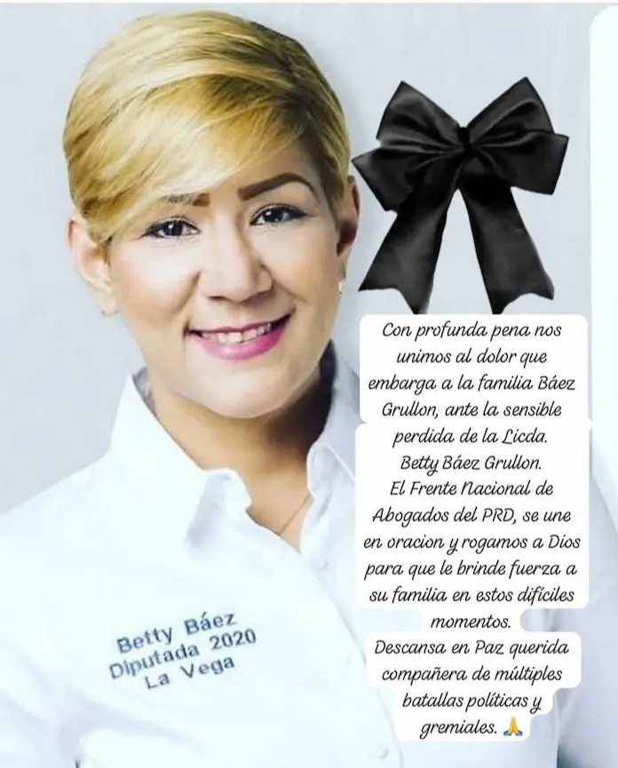 LA VEGA, República Dominicana — La provincia de La Vega se encuentra sumida en la tristeza tras la repentina muerte de Bethy Báez, reconocida dirigente política, abogada y figura respetada en el ámbito jurídico local. La noticia se confirmó este viernes 15 de agosto, cuando familiares y allegados informaron que la también exintegrante de la Comisión Política del Partido Revolucionario Dominicano (PRD) había fallecido a los 38 años.