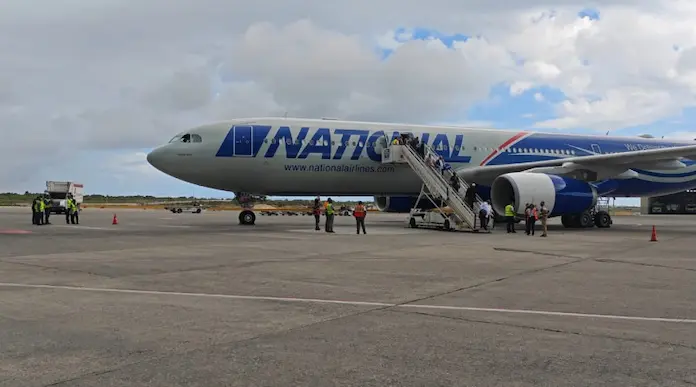 Los jugadores y el cuerpo técnico del combinado tricolor aterrizaron en el Aeropuerto Internacional de las Américas, José Francisco Peña Gómez, a la 1:37 de la tarde de este lunes a través de un Airbus A330.