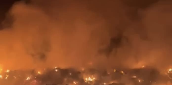 Sabana Iglesia, Santiago.– Un incendio registrado en el vertedero de Sabana Iglesia mantiene en alerta a las autoridades y comunitarios, tras más de 48 horas de intensa humareda que afecta directamente al sector San Miguelito, donde residentes denuncian riesgos para la salud, especialmente en niños y envejecientes.