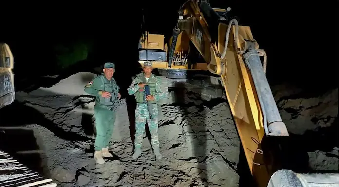 Los operadores de la maquinaria lograron huir del lugar al percatarse de la presencia del personal militar, aprovechando la oscuridad para escapar.