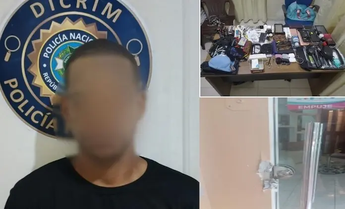 SANTIAGO.– Miembros de la Policía Nacional, adscritos a la Sección de Investigación de Delitos contra la Propiedad, con asiento en el destacamento del sector Los Salados, informaron que fue detenido en flagrante delito el nombrado Francisco Javier Peña, alias Yorki, de 29 años de edad, quien fue sorprendido en el momento en que intentaba penetrar de manera violenta a un negocio ubicado dentro de una plaza comercial.