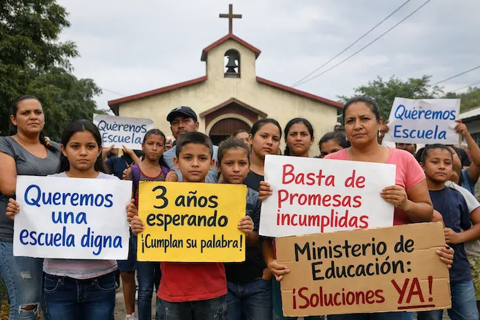 El sacerdote Nicolás Domínguez, figura clave en el acompañamiento comunitario, advirtió que la situación ha llegado a un punto límite. “No podemos seguir esperando. Han pasado casi tres años desde que se demolió la escuela y no se ha avanzado en nada”, expresó.